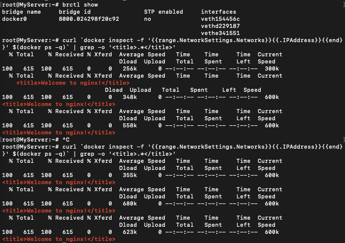 - Ubuntu 호스트 VM 에서 동작하는 컨테이너의 네트워크 정보 샘플 https://youtu.be/SJFO2w5Q2HI