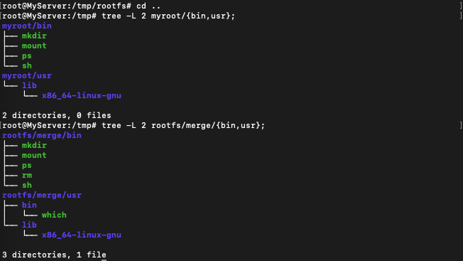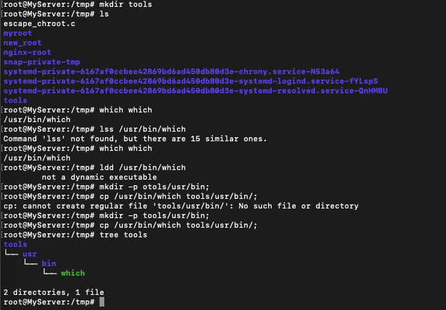 cp /usr/bin/mkdir /tmp/myroot/bin/;