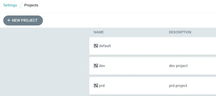 사용자는 dev와 prd 두 개의 환경별 프로젝트를 생성했습니다.